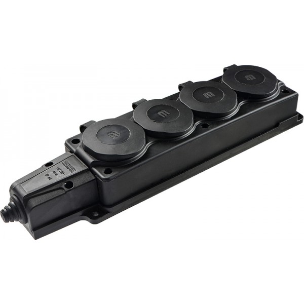 Колодка каучукова 2Р+PE з захисними кришками чотиримісна 16А IP44