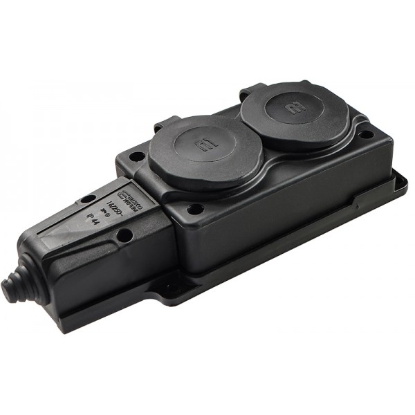 Колодка каучукова 2Р+PE з захисними кришками двомісна 16А IP44