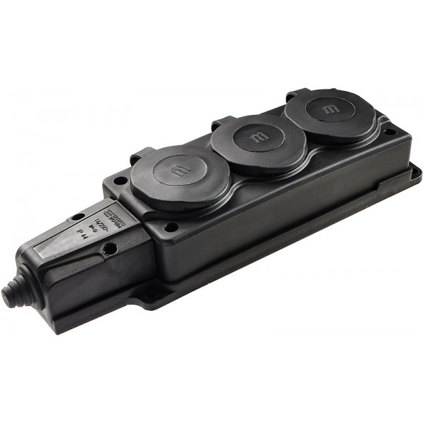 Колодка каучукова 2Р+PE з захисними кришками тримісна 16А IP44