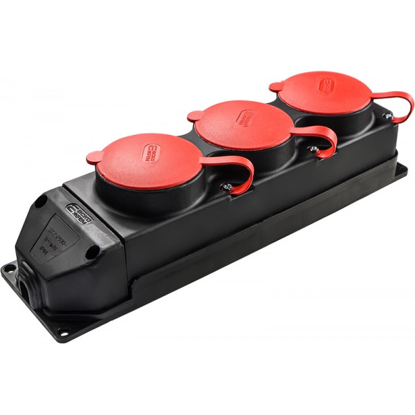 Колодка каучукова 3Р+РЕ з захисними кришками тримісна (3×25А) IP44