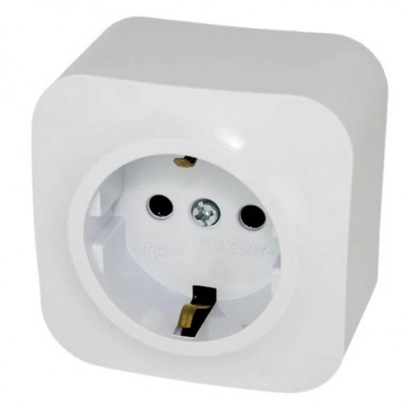 Розетка накладна Quantum одинарна із заземленням біла, 1шт/уп