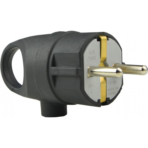 Вилка каучукова кутова з кільцем 2P+PE 16А