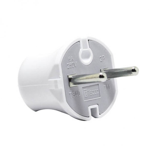 Вилка ТЕССО штепсельна без заземлення 6А, 250V~ біла 1шт/уп
