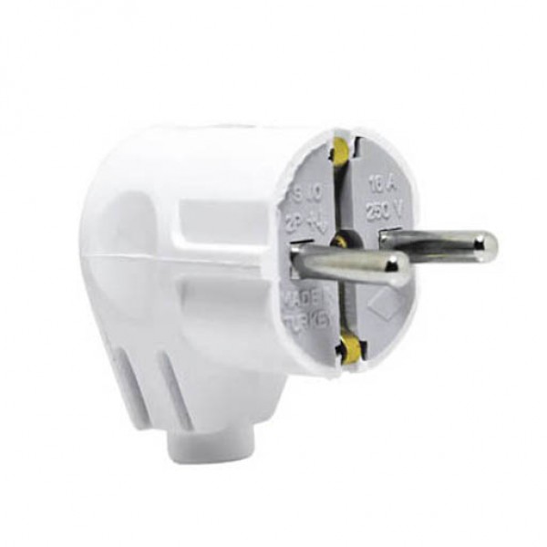 Вилка ТЕССО штепсельна кутова із заземленням 16А, 250B~ біла 1шт/уп