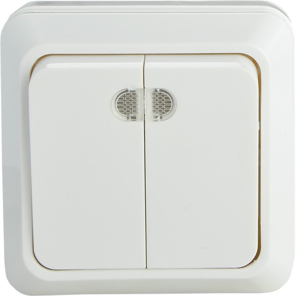 Вимикач 2-кл. з підсвічуванням BЗ10-2-1-Ct-W (білий)