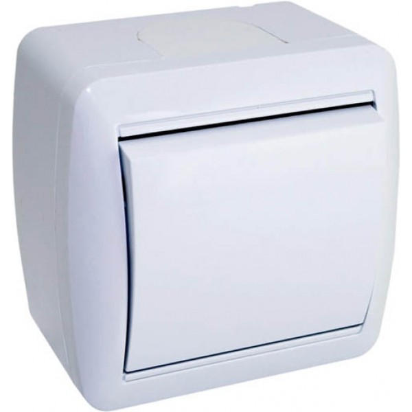 Вимикач накладний Quantum одноклавішний бризкозахищений білий, 1шт/уп