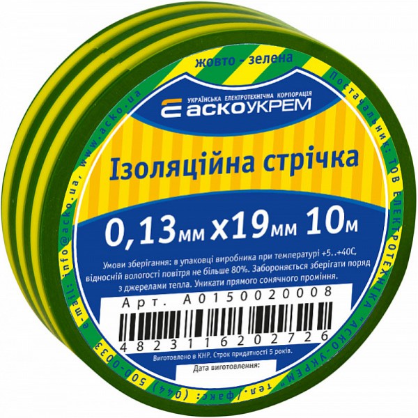 Ізострічка 0,13мм*19мм/10м жовто-зелена