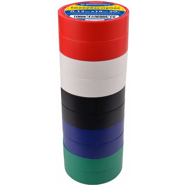 Ізострічка 0,13мм*19мм/20м Набір №1 (2 чорні+2сині+2червоні+2зелені+2білі)