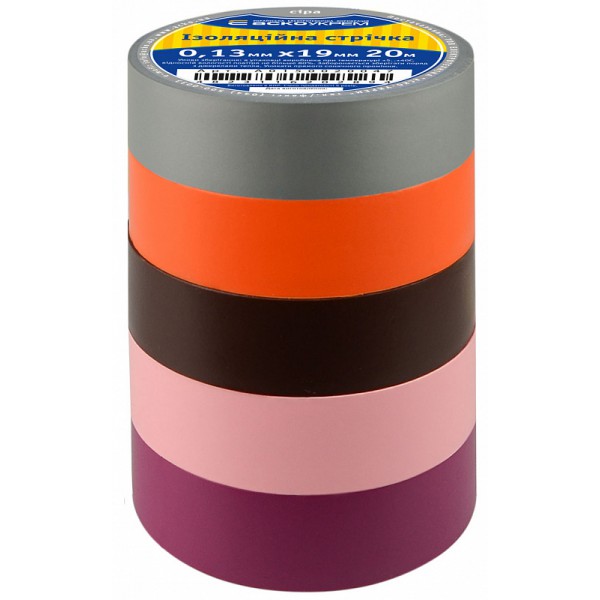 Ізострічка 0,13мм*19мм/20м Набір №2 (1 сіра +1 помаранчева +1 коричнева +1 фіолетова+1 рожева)