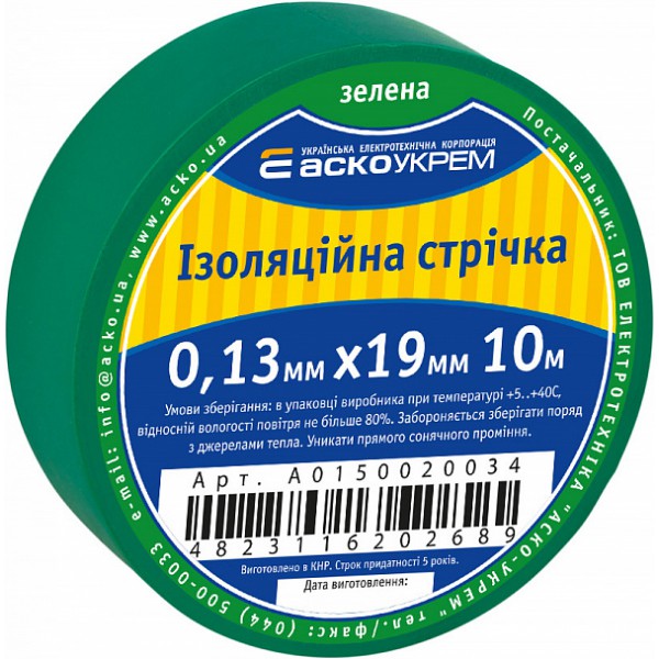 Стрічка ізоляційна 0,13мм*19мм/10м зелена