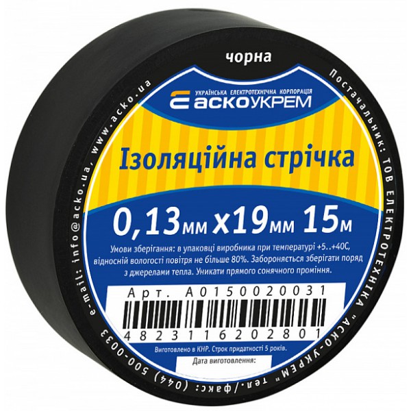 Стрічка ізоляційна 0,13мм*19мм/15м чорна