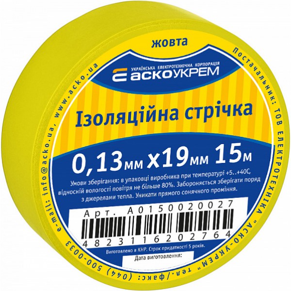 Стрічка ізоляційна 0,13мм*19мм/15м жовта
