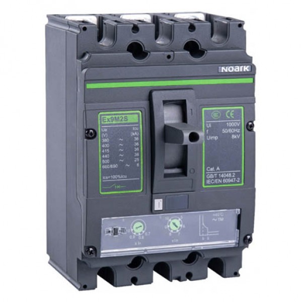 Корпусні автоматичні вимикачі серії Ex9M призначені для різних застосувань в галузі житлового та офісного будівництва, торгових та адміністративних центрів, а також для особливо вимогливих промислових об'єктів. Відповідають вимогам стандарту IEC/EN 60947-2 та забезпечують функції надійного захисту для широкого спектру застосування, включаючи вимкнення під навантаженням. Дані автоматичні вимикачі пропонуються у варіантах 3х і 4х-полюсного виконання, оснащені термомагнітним розчіплювачем і мають здатність відключення від 36 до 150 kA. Номінальна імпульсна напруга Uimp 8 kV, що витримується, дозволяє використовувати їх навіть у системах з можливими перенапругами високої інтенсивності, наприклад у важкій промисловості. Все типорозміри можуть бути доукомплектовані різними додатковими аксесуарами, включаючи додаткові та сигнальні контакти, розчіплювачем мінімальної напруги, незалежним розчіплювачем, поворотними рукоятками та мотор-приводами.