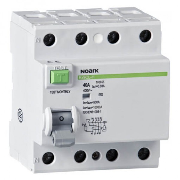 Диференційний вимикач (ПЗВ), Icn=10kA, 4 полюса, In=63A, IΔn=100mA, typ S+AC, Ex9CL-100 4P 63A 100mA