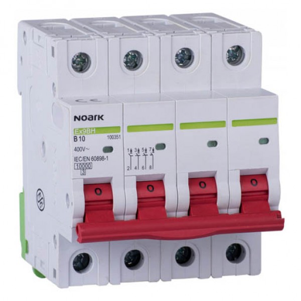 Автоматичні модульні вимикачі серії Ex9BH є універсальними пристроями захисту для всіх типів використання, де потрібні високі стандарти для автоматичних вимикачів промислового застосування відповідно до EN 60898, з номінальним струмом в діапазоні від 1 до 63 A. Відключаюча здатність Icn становить 10 кА. Відключаюча здатність Icn відноситься до всіх автоматичних вимикачів, тобто до номінального струму 63 А та до D характеристики спрацювання. Автоматичні вимикачі серії Ex9BH поставляються в версіях 1, 1 + N, 2, 3, 3+N і 4-х полюсного виконання з шириною полюса відповідного одному модулю (18 мм). Характеристики спрацювання - B, C, D. Серія Ex9BH має кольорові рукоятки, колір рукояток відповідає номінальному струму автоматичного вимикача. Так як пластик рукоятки забарвлений в масі, то рукоятки не можна взаємозаміняти. Автоматичні вимикачі серії Ex9BH можуть бути укомплектовані широким спектром додаткових аксесуарів, а саме: додатковими і сигнальними контактами, незалежними розчеплювачами, розчеплювачами мінімальної напруги, розчеплювачами максимальної напруги, а також додатковими блоками ПЗВ. Є можливість створити різні комбінації аксесуарів. Комбінації обмежені тільки загальною кількістю аксесуарів, а не їх типом - будь-які комбінації можливі. Додатково можна використовувати до 3х додаткових або сигнальних контактних блоків, а також додатково до 2х розчеплювачів.