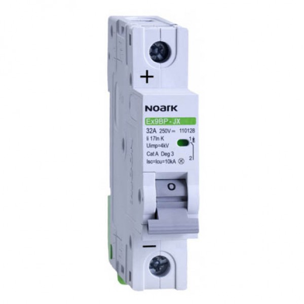 DC Модульні автоматичні вимикачі серії Ex9BP-JX призначені для захисту від струмів КЗ і теплового захисту в ланцюгах постійного струму з номіналом до 63 А, наприклад в системах автоматизації, контрольних ланцюгах, в системах релейного захисту, а також в побутових мережах DC струму. Доступні до замовлення в 1 - 4-х полюсному виконанні з шириною 1 DIN (18 мм) на полюс. Характеристики спрацювання C і K. Серія Ex9BP-JX також як і серії автоматичних вимикачів Ex9B і Ex9PN можуть комплектуватися широким спектром додаткових аксесуарів. Можна встановити до 3х модулів додаткових або сигнальних контактів AX31, AL31, AXL31, а також до двох модулів розчеплювачів. Можна встановити незалежний розчеплювач або розчеплювач мінімальної напруги. Всі аксесуари монтуються на автоматичному вимикачі з лівої сторони.