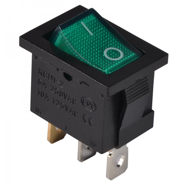 KCD1-2-101N GR/B 220V Перемикач 1 клав. зелений з підсвічуванням