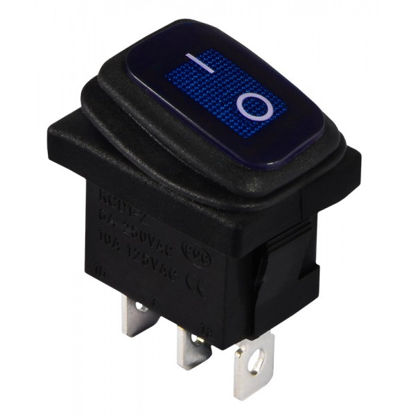 KCD1-2-101NW BL/B 220V Перемикач 1 клав. вологозах. синій з підсвічуванням
