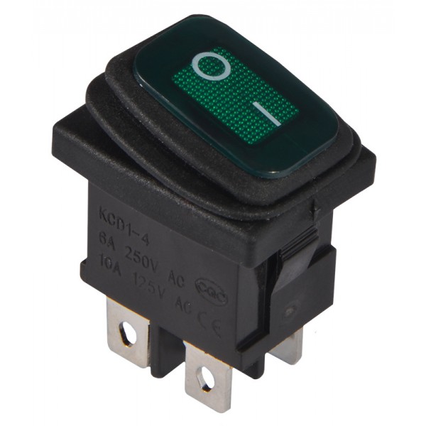KCD1-4-201NW GR/B 220V Перемикач 1 клав. вологозах. зелений з підсвічуванням