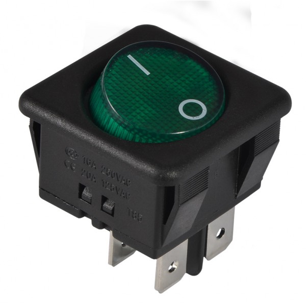 KCD2-10-201 GR/B Перемикач 1 клав. (зелена кругла клавіша)