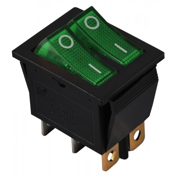 KCD2-2101N C3-GR/B 220V Перемикач 2 клав. зелений з підсвічуванням