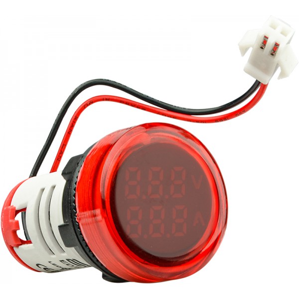 Круглий цифровий вимірювач універсальний струму+напруги ED16-22 VAD 0-100A, 50-500В (червоний)