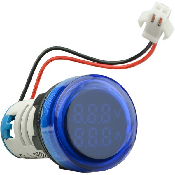 Круглий цифровий вимірювач універсальний струму+напруги ED16-22 VAD 0-100A, 50-500В (синій)