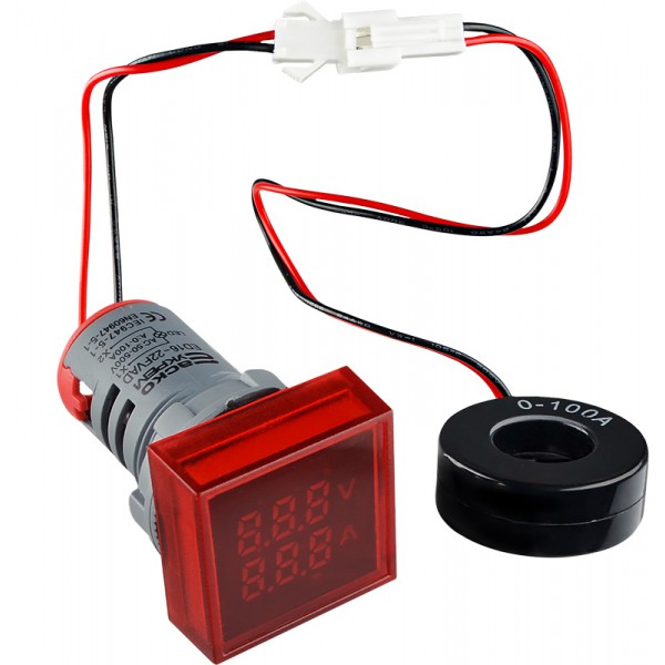 Квадратний цифровий вимірювач універсальний струму+напруги ED16-22 FVAD 0-100A, 50-500В (червоний)
