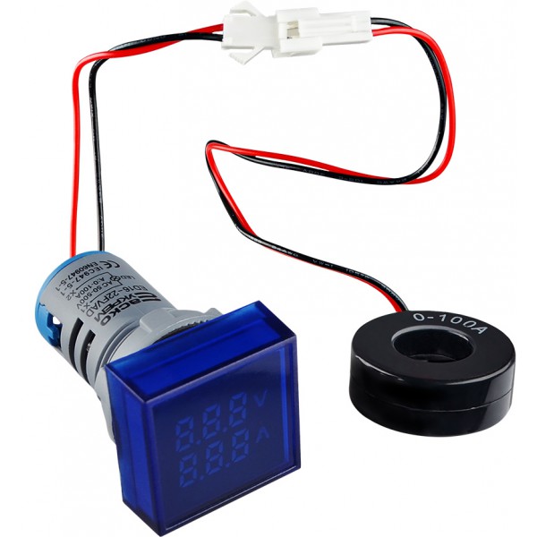 Квадратний цифровий вимірювач універсальний струму+напруги ED16-22 FVAD 0-100A, 50-500В (синій)
