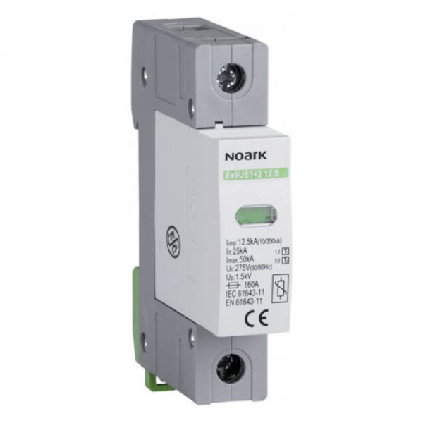 Серія Ex9UE1+2 25 - група пристроїв захисту від імпульсних перенапруг класу I + II. Вони призначені як захист від прямого попадання блискавок середньої інтенсивності у повітряну лінію. У стандартній трифазній мережі TN-C вони забезпечують захист згідно вимогам LPL I, II, викладеним у EN 62305 із загальним струмом блискавки, що вводиться в електричну установку 75 кА і загальний струм блискавки 150 або 200 кА на основі фізичної конфігурації і взаємного положення заземлення точкою громовідводу, точкою заземлення електроустановки та місцем установки SPD. Конструкція Ex9UE1+2 25 – гібридна, що базується на комбінації високоенергетичних металевих оксидних варисторів (MOV) та ізоляції Spark Gap (SG). Ця комбінація забезпечує менший час відгуку завдяки швидкому MOV і SG в порівнянні з низькою напругою до чистого розчину SG. Послідовне підключення MOV забезпечує не тільки обмеження характеристик струму для SG, але також повну ізоляцію через послідовне підключення SG до MOV. Основні характеристики визначаються переважно частиною MOV. Отриманий рівень захисту і характеристики реагування не тільки виконують вимоги SPD класу I, але й для класу II. Ex9UE1+2 25 забезпечує захист для обох класів I і II. Модульна конструкція зі змінними модулями захисту дозволяє легко і швидко замінити модуль у випадку спрацювання MOV або якщо його термін служби вичерпано через високу інтенсивність або часте виникнення піків перенапруги.