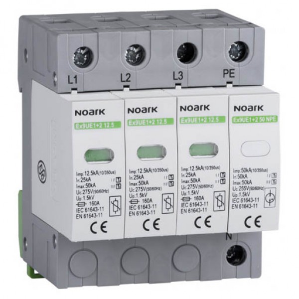 ПЗІП, клас 1+2 (B+C), Iimp=12,5 kA, Uc=275 VAC, 3+N полюси, Ex9UE1+2 12.5 3PN 275