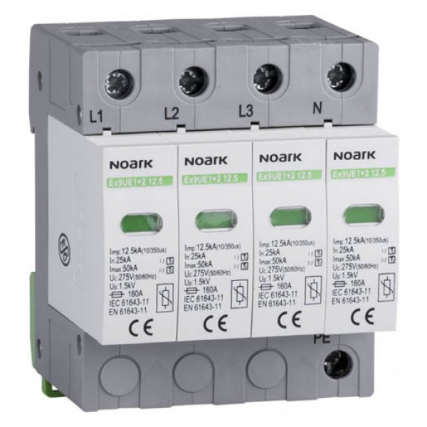 Серія Ex9UE1+2 25 - група пристроїв захисту від імпульсних перенапруг класу I + II. Вони призначені як захист від прямого попадання блискавок середньої інтенсивності у повітряну лінію. У стандартній трифазній мережі TN-C вони забезпечують захист згідно вимогам LPL I, II, викладеним у EN 62305 із загальним струмом блискавки, що вводиться в електричну установку 75 кА і загальний струм блискавки 150 або 200 кА на основі фізичної конфігурації і взаємного положення заземлення точкою громовідводу, точкою заземлення електроустановки та місцем установки SPD. Конструкція Ex9UE1+2 25 – гібридна, що базується на комбінації високоенергетичних металевих оксидних варисторів (MOV) та ізоляції Spark Gap (SG). Ця комбінація забезпечує менший час відгуку завдяки швидкому MOV і SG в порівнянні з низькою напругою до чистого розчину SG. Послідовне підключення MOV забезпечує не тільки обмеження характеристик струму для SG, але також повну ізоляцію через послідовне підключення SG до MOV. Основні характеристики визначаються переважно частиною MOV. Отриманий рівень захисту і характеристики реагування не тільки виконують вимоги SPD класу I, але й для класу II. Ex9UE1+2 25 забезпечує захист для обох класів I і II. Модульна конструкція зі змінними модулями захисту дозволяє легко і швидко замінити модуль у випадку спрацювання MOV або якщо його термін служби вичерпано через високу інтенсивність або часте виникнення піків перенапруги.
