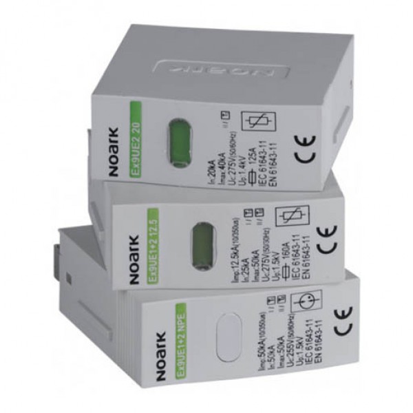 Серія Ex9UE1+2 25 - група пристроїв захисту від імпульсних перенапруг класу I + II. Вони призначені як захист від прямого попадання блискавок середньої інтенсивності у повітряну лінію. У стандартній трифазній мережі TN-C вони забезпечують захист згідно вимогам LPL I, II, викладеним у EN 62305 із загальним струмом блискавки, що вводиться в електричну установку 75 кА і загальний струм блискавки 150 або 200 кА на основі фізичної конфігурації і взаємного положення заземлення точкою громовідводу, точкою заземлення електроустановки та місцем установки SPD. Конструкція Ex9UE1+2 25 – гібридна, що базується на комбінації високоенергетичних металевих оксидних варисторів (MOV) та ізоляції Spark Gap (SG). Ця комбінація забезпечує менший час відгуку завдяки швидкому MOV і SG в порівнянні з низькою напругою до чистого розчину SG. Послідовне підключення MOV забезпечує не тільки обмеження характеристик струму для SG, але також повну ізоляцію через послідовне підключення SG до MOV. Основні характеристики визначаються переважно частиною MOV. Отриманий рівень захисту і характеристики реагування не тільки виконують вимоги SPD класу I, але й для класу II. Ex9UE1+2 25 забезпечує захист для обох класів I і II. Модульна конструкція зі змінними модулями захисту дозволяє легко і швидко замінити модуль у випадку спрацювання MOV або якщо його термін служби вичерпано через високу інтенсивність або часте виникнення піків перенапруги.