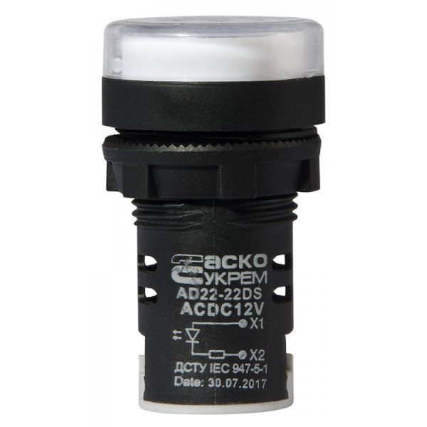Сигнальна арматура AD22-22DS біла 12V АC/DC