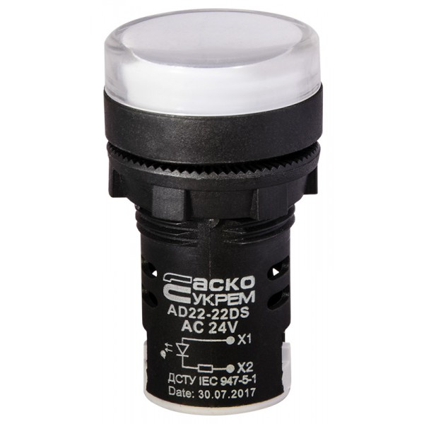 Сигнальна арматура AD22-22DS біла 24V АC/DC