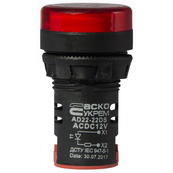 Сигнальна арматура AD22-22DS червона 12V АC/DC