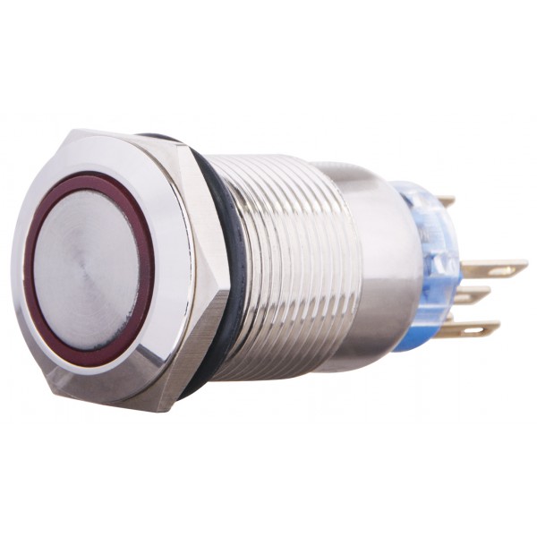 TYJ 19-371 Кнопка металева пласка з фіксац. 1NO+1NC, з підсвічуванням, червона 220V.